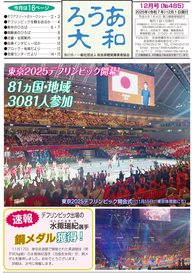 奈良県内のろうあ運動の動きや、いろいろな情報をわかりやすく会員に親しまれるようにお伝えします。