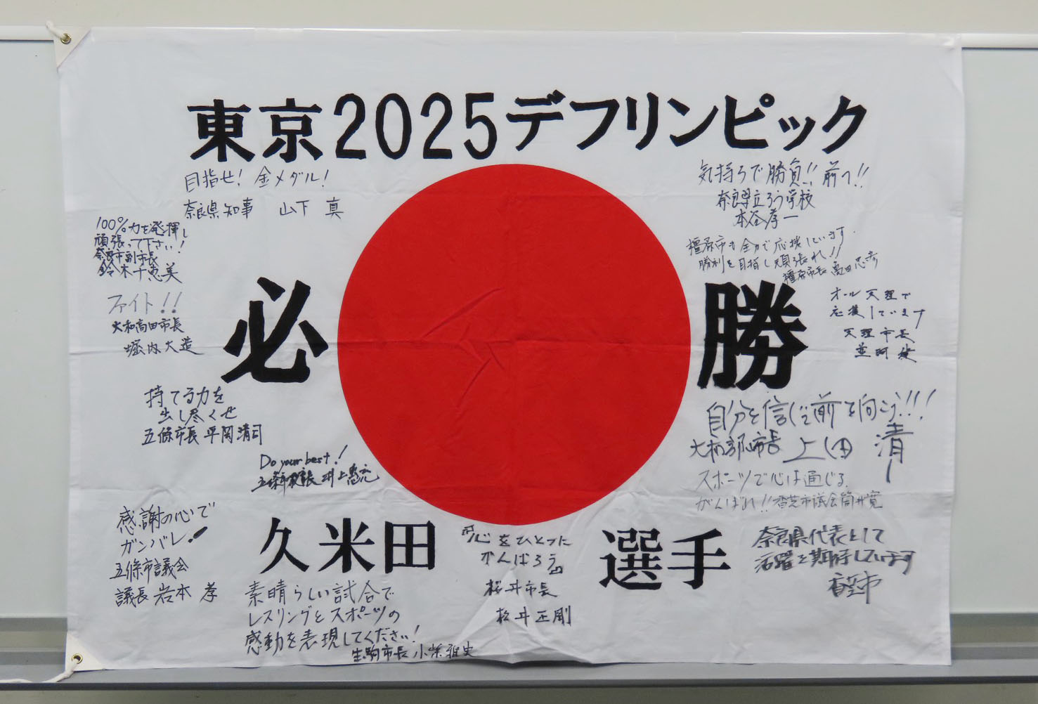 [奈良から出場する選手] ・柔道:水掫 瑞紀(もんどり みずき)選手 [五條市出身] -男子-90㎏級 -団体戦 [デフリンピック代表内定] ・レスリング:久米田 忠裕(くめた ただひろ)選手 [天理市在住] -フリースタイル65kg -グレコローマン67kg 参考:日本代表選手団一覧 ・第25回夏季デフリンピック競技大会(於東京) 日本代表選手団員決定